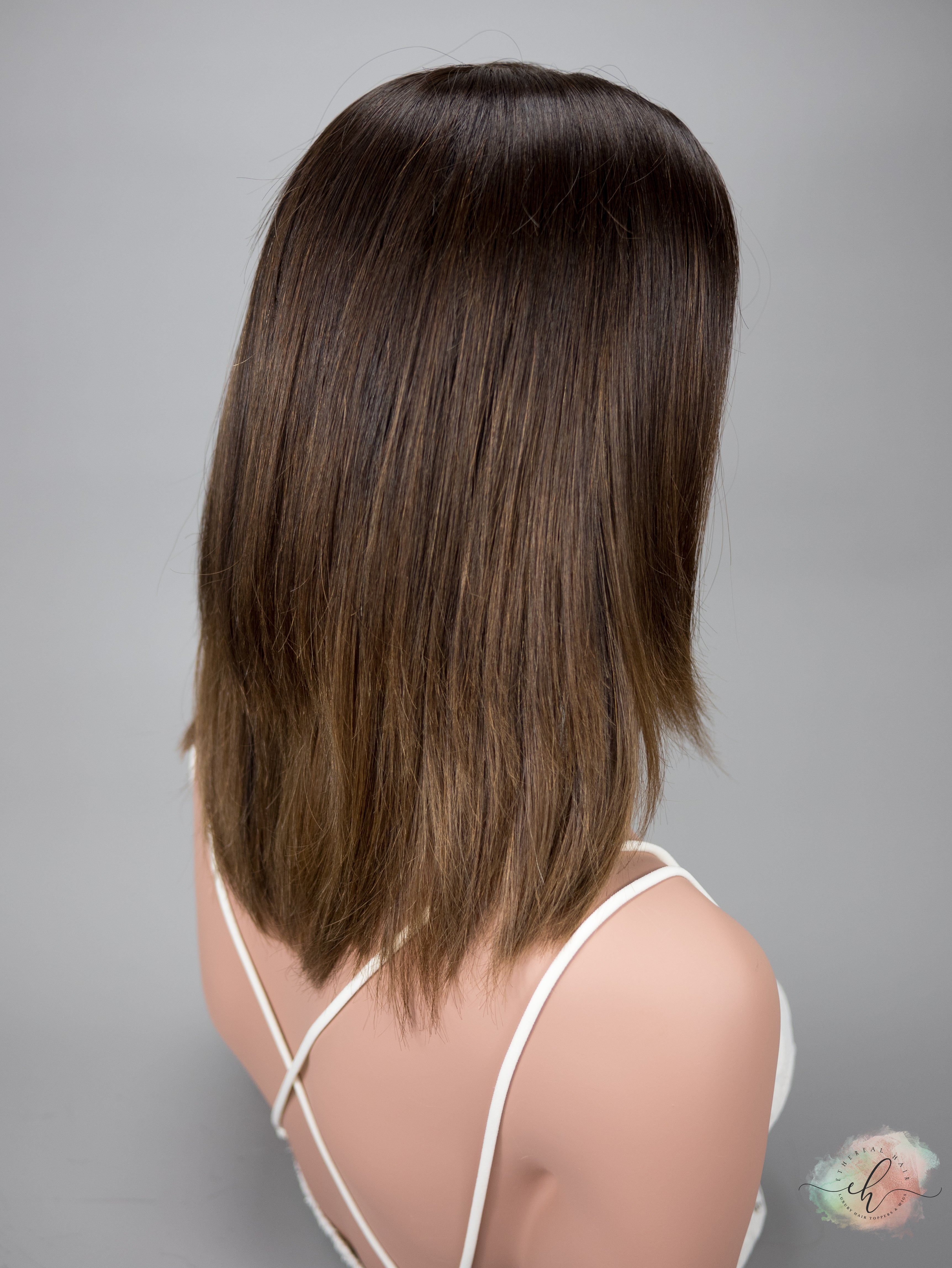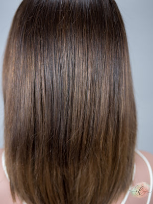 • "Brown Sugar" is a Custom Colored Virgin Dark Brown (Level 4) base and root with Warm to Neutral Brunette Balayage throughout.  Overall Neutral to Warm in Tone.